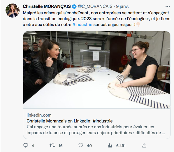 Après le lancement le 5 janvier dernier de sa « tournée » auprès d’entreprises de la région, Christelle Morançais est attendue de pied ferme sur la crise de l’énergie. La présidente de région l’assure sur son compte twitter « 2023 sera l’année de l’écologie » et donc une solution pour les industriels souffrant de l’augmentation du prix de l’électricité. Reste à savoir si la réponse proposée par la majorité régionale sera suffisante.