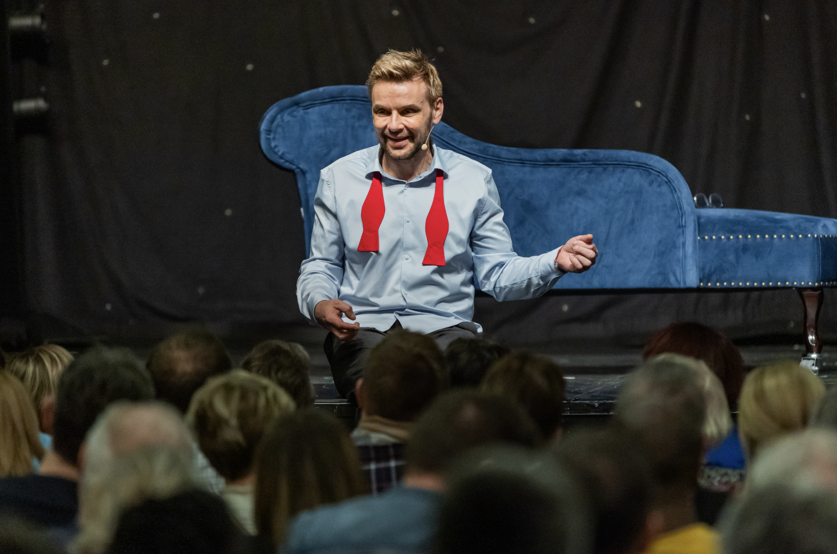 Jeanfi Janssens est revenu au seul en scène. Il jouera son spectacle « Tombé du ciel », drôle et tendre, le 4 mars 2026 à la Cité des Congrès de Nantes.