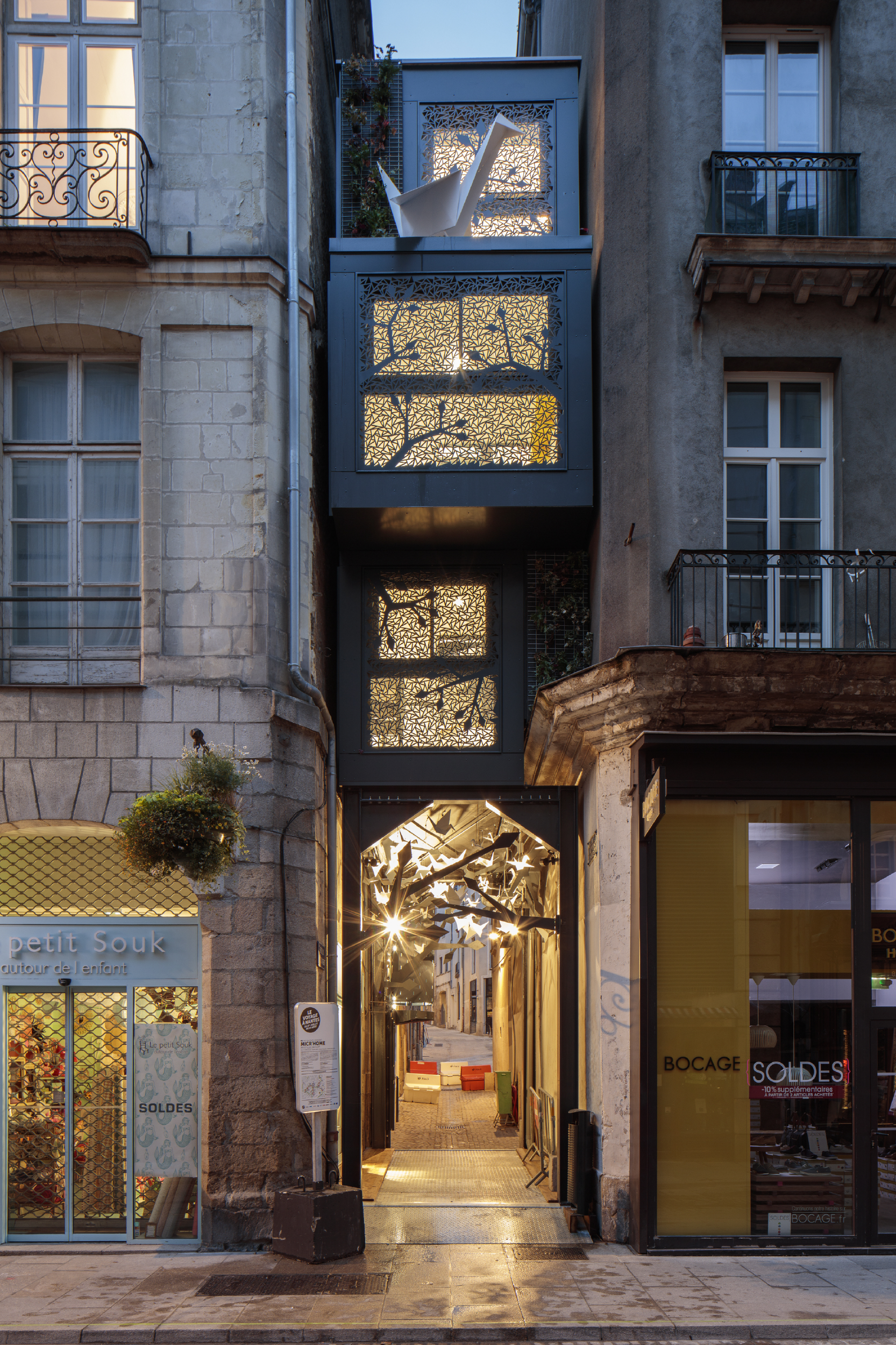 Installée au croisement de la rue du Puits-d’Argent et de la rue de la Fosse à Nantes depuis près de 10 ans, Micro’Home s’en va. La Rue de la Fosse sera fermée le mardi 10 et le mercredi 11 février pendant les opérations de grutage. Prolongement envisagée le 12 février en fonction des conditions météorologiques.