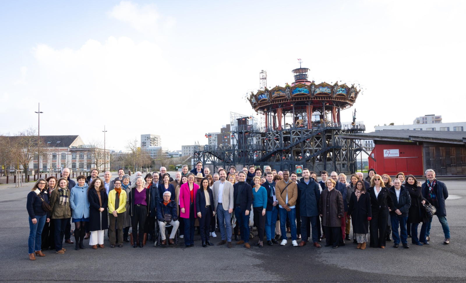 Photo : Foulques Chombart de Lauwe et Sarah El Haïry au milieu des membres de « Votre nouveau souffle pour Nantes »